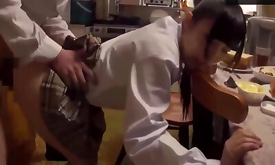 Stepdad fucks his Asian daughter-in-law hardcore and cums in her mouth