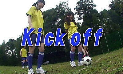 Asiatische Cougars beim gemeinsamen fussballtraining