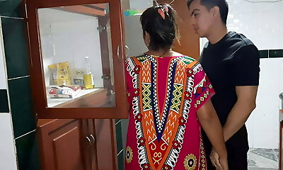 My step-mother gives me a blowjob in the kitchen