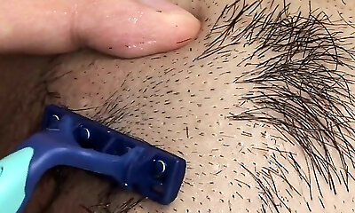 Cute chinese female gets her pussy shaved and the plays whit herself