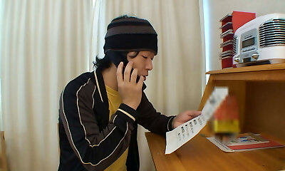 Japanese landlord gives his maid a fat facial followed by the gardener