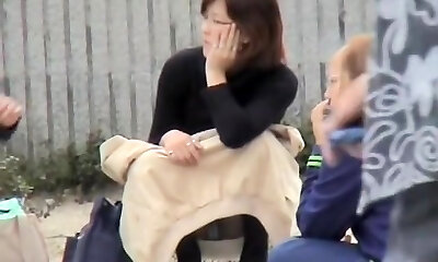 Voyeur footage of Asian girls with soaked underpants